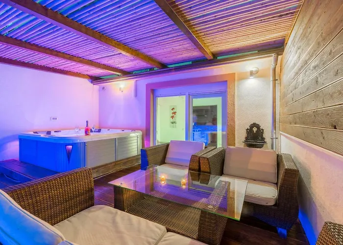 Tino Luxury Apartment With Jacuzzi ligger i distriktet Gamla stan, 1,9 km från Frukttorget, och erbjuder barbecue och trädgård. Det billiga stället kan rymma upp till 4 gäster.